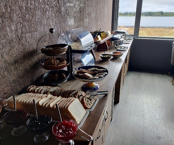 We had arrived too late for dinner service on our first night, and the chef had already clocked off, but the receptionist very kindly went into the kitchens fixed us up with a lovely smoked salmon salad. This was much appreciated as, having just climbed up the Fagradalsfjall volcano site shortly after landing at Keflavik, we weren’t really in the mood for driving into Reykjavik to try to find something to eat.