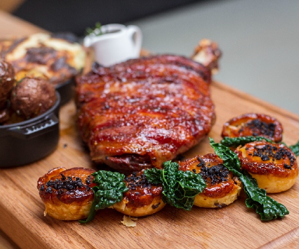 A wild wood pastrimi of pigeon starter comes with smoothly creamed pecorino, the bite of pickled miniature mushrooms, the crunch of sunflower seeds and plump grapes. Still essentially English, there is charred asparagus with the Lavinton Lamb, pickled walnuts accompanying a grilled chop of saddleback pork and more walnuts with the roast king oyster mushroom.