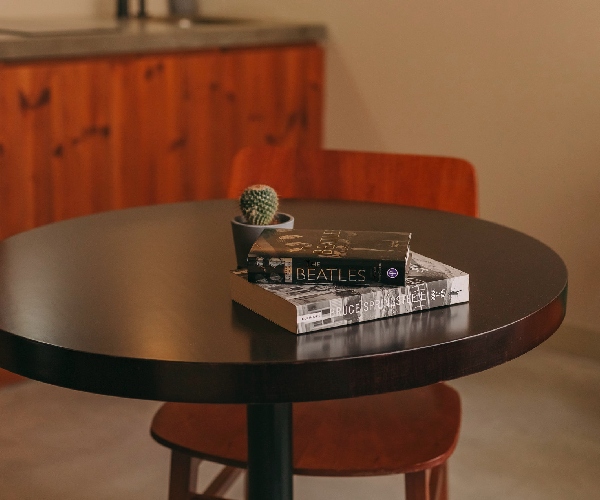 Guests can borrow up to five books and vinyl LPs from the music room. It’s a relaxing library where guests browse for hours.