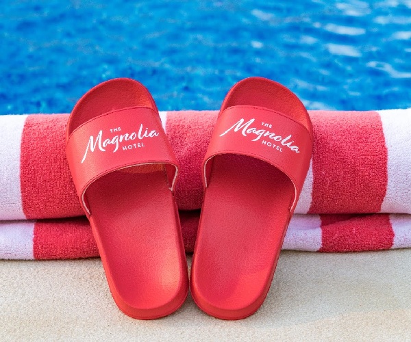 “And what’s your shoe size please?” is a question guests are rarely asked at check-in. Vibrant red flip-flops are issued.