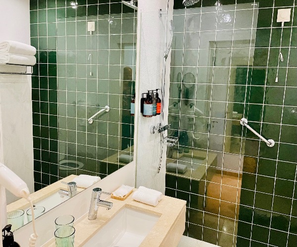 Exceptionally well-designed, with shower but no bath, there is space for toiletries and drying.