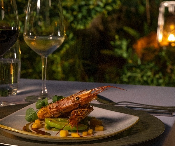 A private dining evening is a very special occasion. Seated in the library by Adrian Grainger’s priceless collection of birding books, candles romantically light our table for two, whilst a family have exclusive use of the formal dining room.