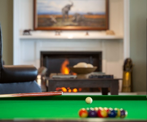 Large, limited edition wildlife photographs by David Yarrow appear throughout the impromptu dining rooms. After dinner guests meet by the billiards table in the bar.