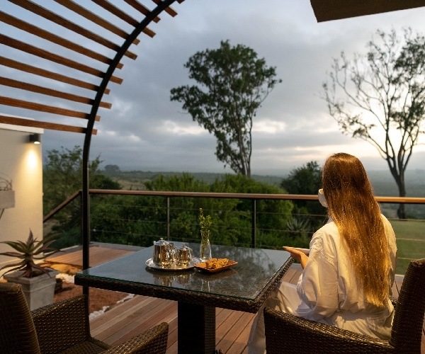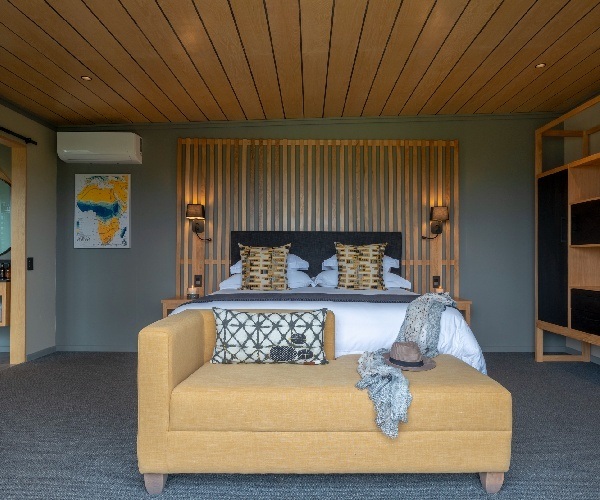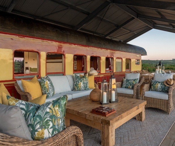 Now, it has three bedrooms that sleep five for exclusive use for family or friends. A private chef and butler provide the service. Expansive decking hosts an al fresco lounge and dining area overlooking a magnificent valley. Soon there will be a watering hole, fed by the carriage’s grey wastewater, for game viewing beyond the boma and swimming pool.