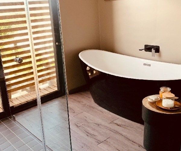 At the end of the carriage, the newly built Ticket Office houses showers with floor-to-ceiling views across the bush.