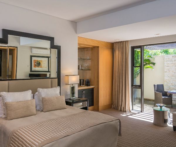 No 5 arrange a pick-up from Port Elizabeth Airport. Much of the short 10-minute transfer runs along the coast. With just seven suites, the receptionist has the time to take us to our suite on the first floor.