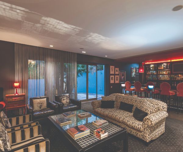 Walking into the 30-seater Jazz Room is like walking into New York City’s Harlem in the 1920s. A piano tinkles, bass thrums, a trombone sings, and drums improvise the percussive rhythm as the soundtrack evokes the Jazz Age. As with every room at No. 5, this restaurant is an art gallery. One wall pays tribute to the musicians of that racy era of jazz and flappers. On the opposite wall there is an eclectic collection including a Warhol. Waiters, elegant in their dark waistcoats and white shirts, again evoke the American Art Deco era. Especially with waffles and bacon drizzled with maple syrup appearing on the breakfast menu. Lunchtime menus are popular with locals dropping in for business, perhaps using the boardroom for a meeting. A vegan bolognaise is one of the highlights.