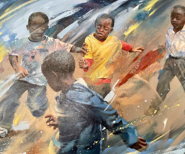 Having time to enjoy the artwork is a luxury. Walking to mealtimes, Herk Serfontein’s nostalgic road scenes of gas stations, motels and a stop for a cold beer become evocative of a past era. Images of the Jazz Age are a favourite too.