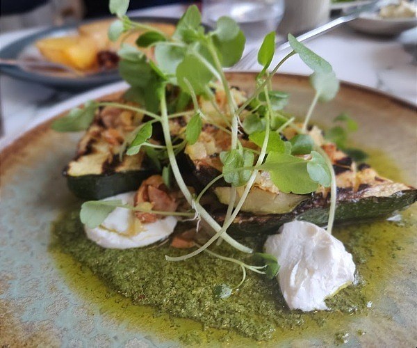 …to the grilled courgette with yohurt and a lemon and salsa verde, perfect for the vegetarians.