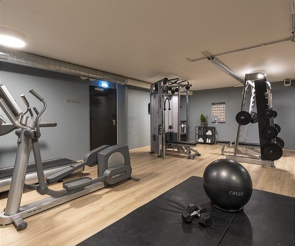 A fitness floor is located on floor 0 and features an array of modern exercise equipment along with complimentary water and towels. It is open 24/7.