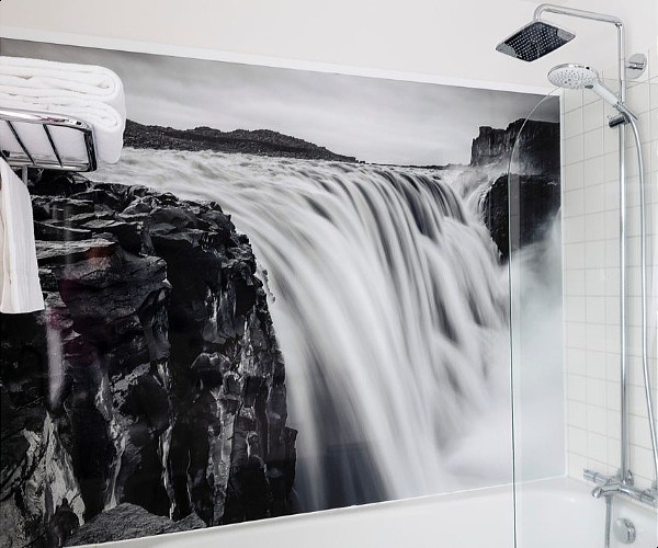 Our bathroom had a great shower area with one of Iceland‘s many waterfalls used as a backdrop, as well as a basin, shaving mirror and WC.