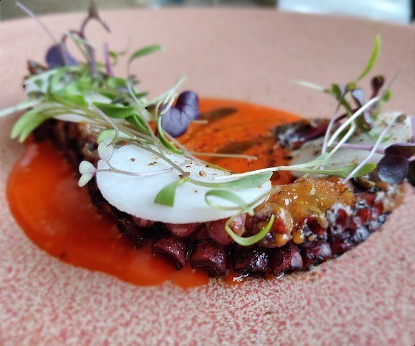 The Brut Restaurant is a high end casual seafood restaurant established in the Autumn of 2021 which we dined in one lunchtime. Among the dishes we had was a deliciously tender octopus starter which came with a slightly smoky, rich salsa rojo and kohlrabi.