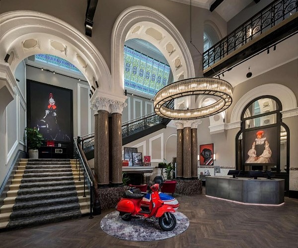 It is instantly evident that this is a very modern, quirky hotel. The design features throughout use contemporary black and white paint with splashes of vibrant red on items such as the Vespa scooter and sidecar and small diving submarine found in the foyer.