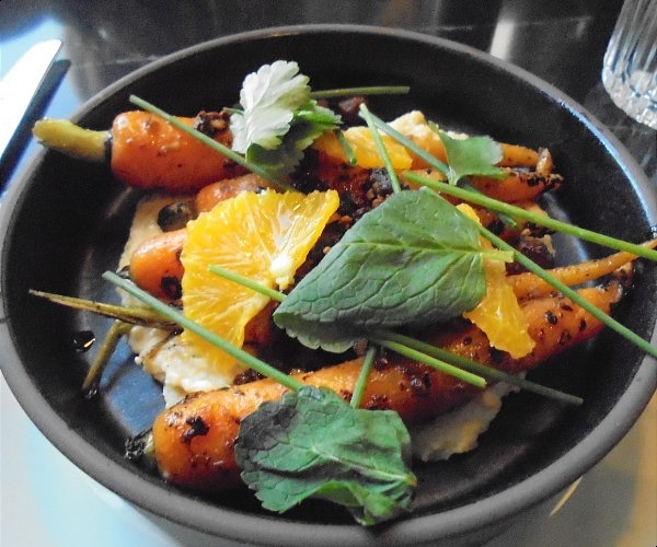 As neither of us had eaten lunch when we arrived, we each had a delicious starter from the a la carte menu at Stoke, the hotel’s restaurant, that consisted of roast carrots with hummus, and Stoke Korean-style sticky barbecued chicken pieces with a Korean barbecue glaze.