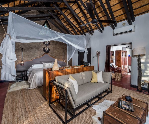 Just seven Tsonga house-style suites, shaded by jackalberry trees, make up this intimate lodge. Pretty purple kalanchoe line the pathway to each detached suite. Six of the seven lodges are named after stations on the gold-hauling Selati railway line built in the late 19th century. A gloriously indulgent Ivory Presidential Suite, fit for royalty, is the seventh.