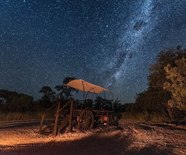 Evening drives pause for a sundowner before the sky darkens and the ranger points out the Southern Cross shining brightly in a Southern Hemisphere dark sky.
