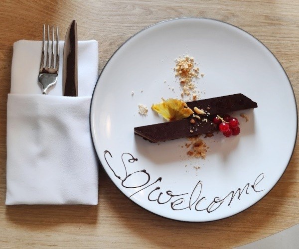 A personalised welcome note from the General Manager, a bottle of fizz, some fresh fruit and a dessert with ‘SO/ Welcome’ inscribed in chocolate were among the many treats that greeted me in the room.
