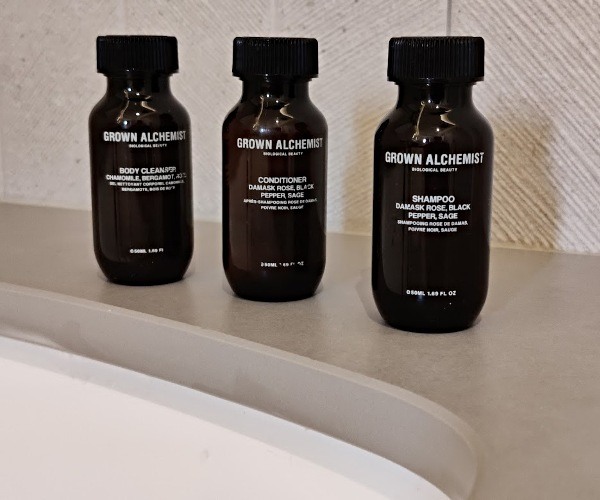 Toiletries are from Australian beauty brand Grown Alchemist whose focus is on all-natural, non-toxic ingredients.
