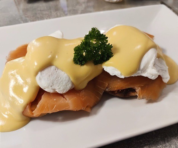 A full English is among the cooked choices, of course, but there’s also scrambled egg and smoked salmon (made from Julian’s family recipe), kippers, the Banner-Price beans on toast and smashed avocado served on toasted sourdough, topped with poached eggs, with or without crispy bacon. Pictured are the full English and Eggs Royale options.