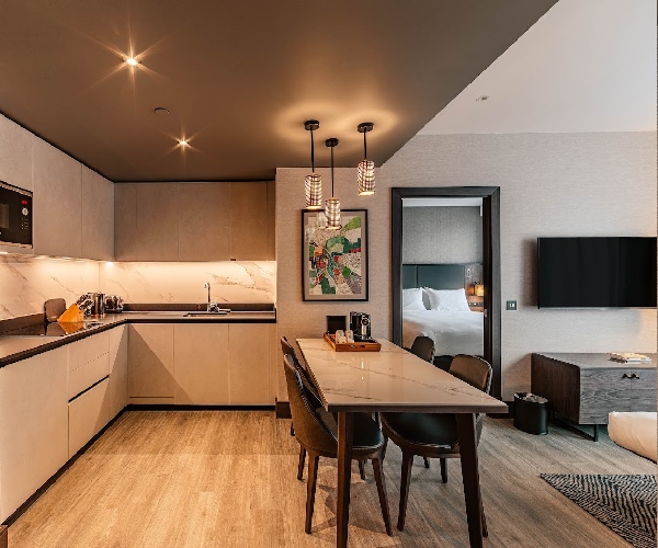 The Fellows House offers Kipling rooms, evolving through to Darwin duplex suites. Our Gormley – named after Trinity College artist Sir Antony – is a one-bedroom apartment with a kitchen area, a lounge and a bedroom.