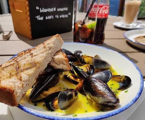 The Steamed Mussels with saffron and white wine sauce, served with a slice of sourdough, is simple but executed beautifully.