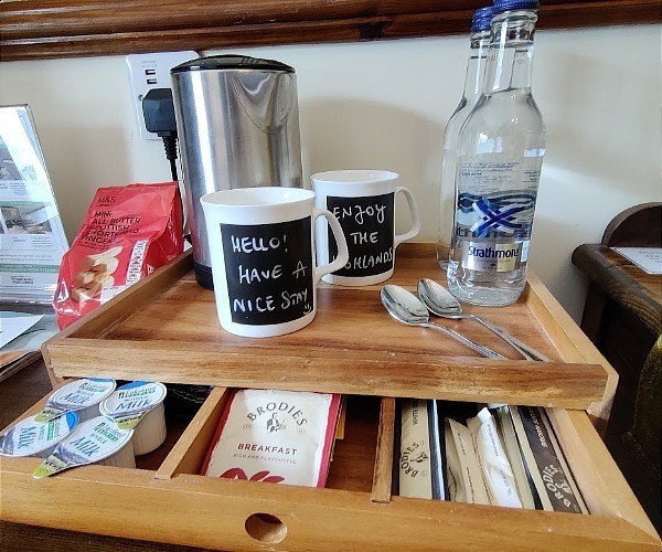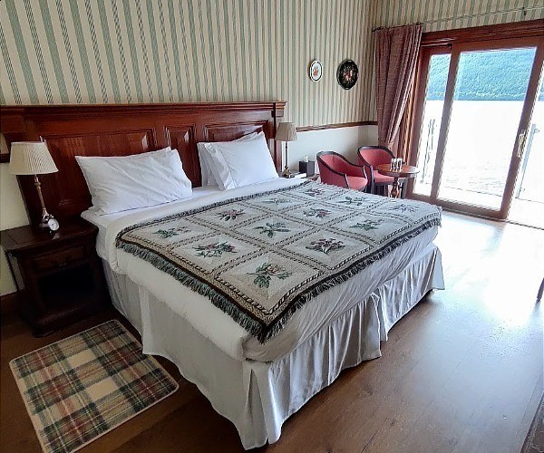 We stayed in room 6, a light and airy pet-friendly Luxury Loch View room with its own private balcony. The room offered a fresh look at traditional Highalnds style, with dark woods and a decor that acknowledged the lodge’s Scottish heritage.