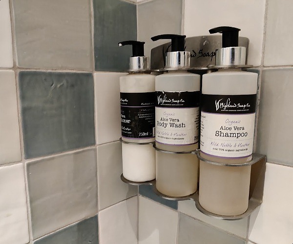Aloe vera toiletries from the Highland Soap Co. are provied – wild nettle and heather shampoo, body wash, conditioner and soap. Gowns, slippers and a hairdyrer are also provided.