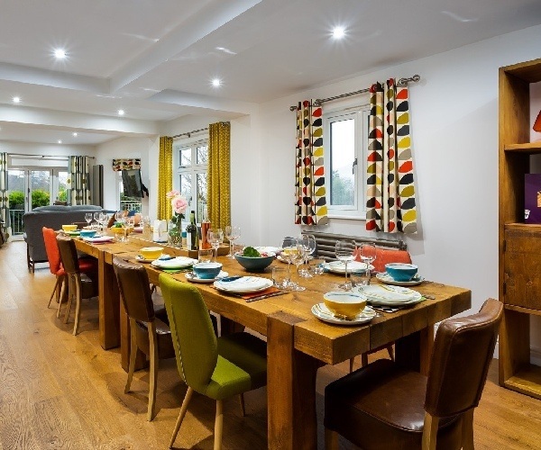 Stylish contemporary decoration, with Orla Kiely fabrics, makes this spacious house a luxurious place for grand reunions of family and friends.