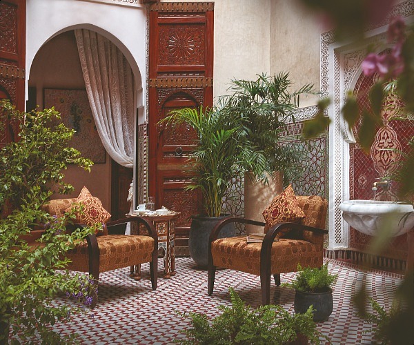 Traditionally, a riad is a house that is centered around an open-air patio, allowing guests to enjoy the natural surroundings. These cool and verdant patios are often filled with plants and decorated with fountains or ponds, while the other rooms all face the bright patio centerpiece. The riad is surrounded by a few alcoves, called bhou, in which guests can enjoy some cool shade when the sun is out.