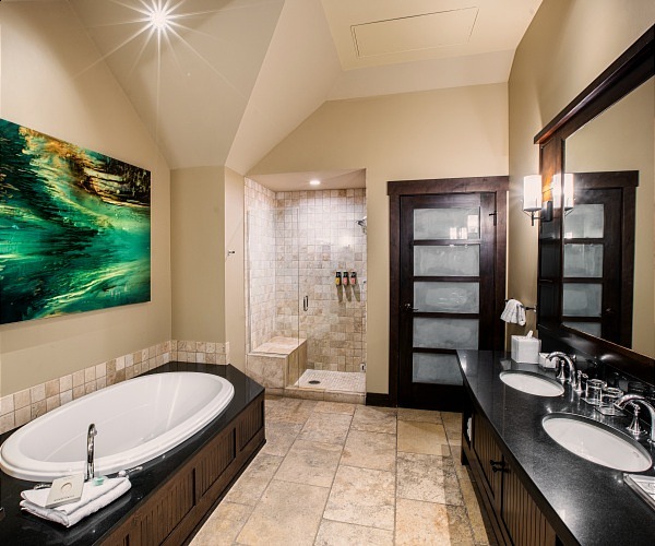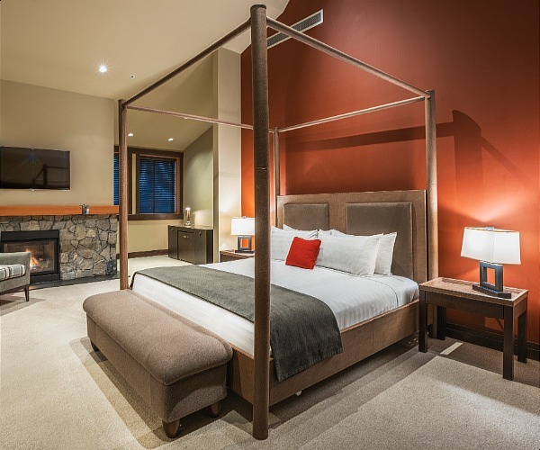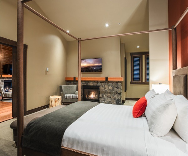 This large, 1,415 square foot suite can comfortably sleep 6. The master bedroom features a gorgeous, four-poster kind-sized bed, with a private basalt gas fireplace, plus an ensuite that boasts a large double soaker bathtub for ultimate comfort.
