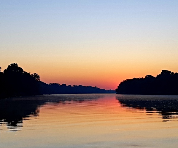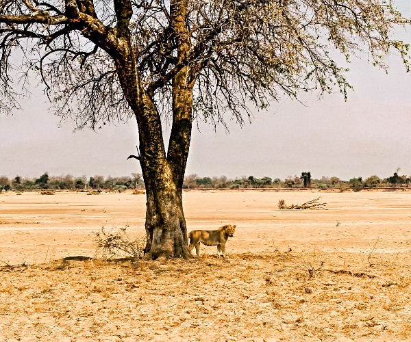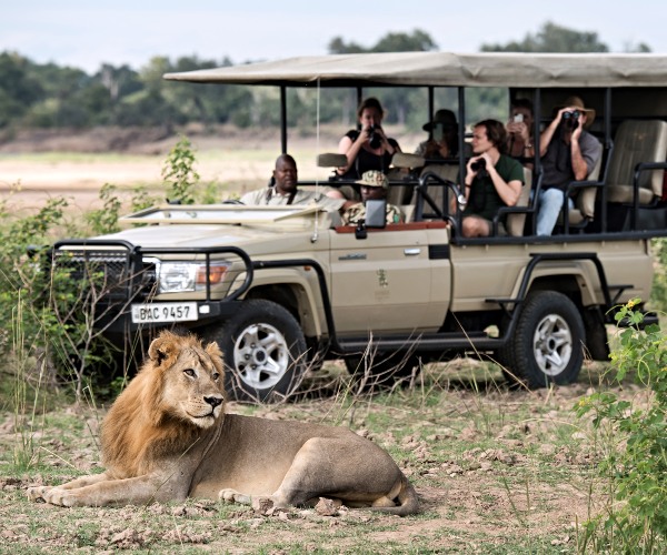 We’re drinking our morning coffee, still rubbing the sleep from our eyes, when we spot two male lions, lying high up on the bank, on the other side of the Luangwa River. It’s hard to tell who is watching who. Are we the watchers or the watched? Rapidly finishing our coffee, we drive the one minute journey from the lodge to the river crossing point, where a team of young men are waiting to pull us, on a pontoon, across the water. The morning air was chilly and still, the river flowed like silk and a brilliant sunrise lit the sky with streaks of red, pink, purple and orange. Immediately we reach the opposite bank, we clamber into the game drive vehicle, and head off in search of the lazy lions.