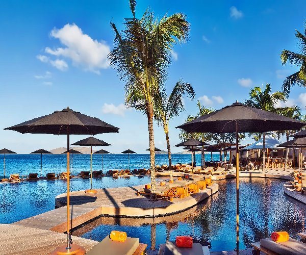 The resort is in beautiful tropical gardens bursting with bougainvillea and palms. From the hotel, you can also see stunning views across Marechal’s sandy beaches and the turquoise reef lagoon.