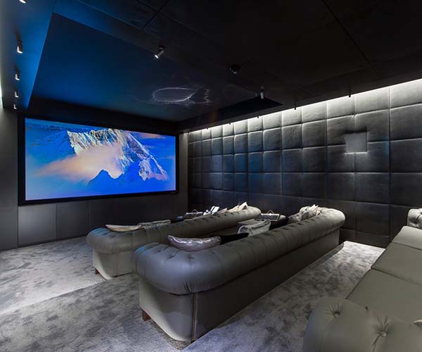 The facilities in the most luxurious chalets are pretty impressive. Wine Caves, Heated Indoor Pools, State Of The Art Gymnasiums, Heli Pads, Mini Nightclubs with sprung dance floors, the list goes on. One provision that any self respecting luxury chalet must have is a home cinema. Cosying up after dinner with the family to watch a film is a pretty cool thing to do. Here are five beautiful chalets that can provide that luxury feature.