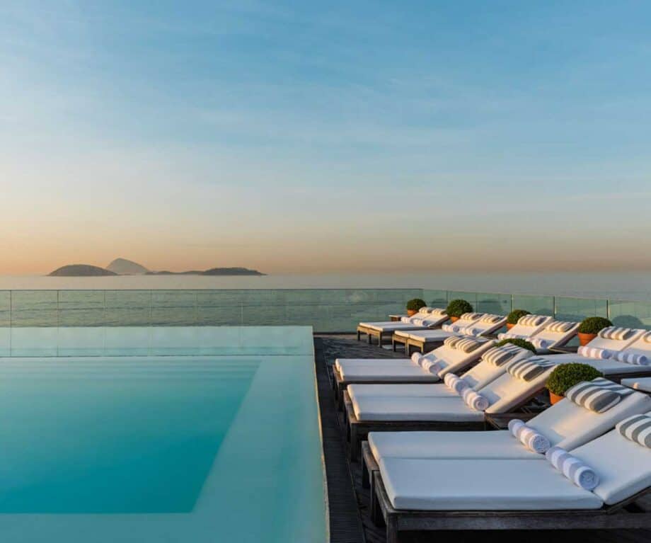 The rooftop bar is the place to be seen for drinks and incredible views over Ipanema and beyond. Guests can enjoy the pool or just soak up the vibe at this effortlessly chic hotel.