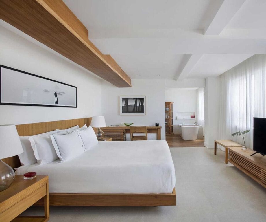 A few doors down from the Copacabana Palace is another of Rio’s top luxury stays, the Emiliano. Distinctive for its unusual wooden white façade, it was the first boutique luxury property on Copacabana beach.