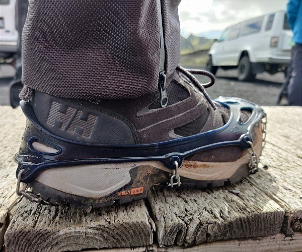 The end result is a shoe that will keep you sure footed on all terrain in all types of conditions. Here is it with a crampon fitted for extra traction within an ice cave on the margin of the Mýrdalsjökull glacier.
