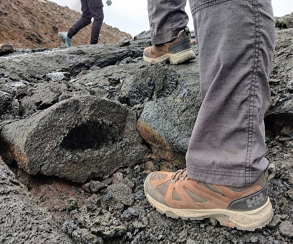 With this exhaustive list of features, it’s little wonder that well-cushioned low-cut walking boot offers great traction on rough terrain such as over this very uneven lava field.