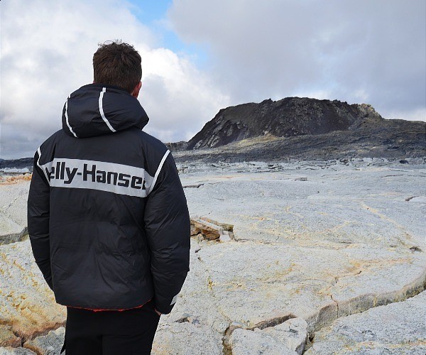 This unisex garment features a clean, streamlined design and the highly technical details Helly Hansen is known for, shown here at Iceland’s Fagradalsfjall volcano site.